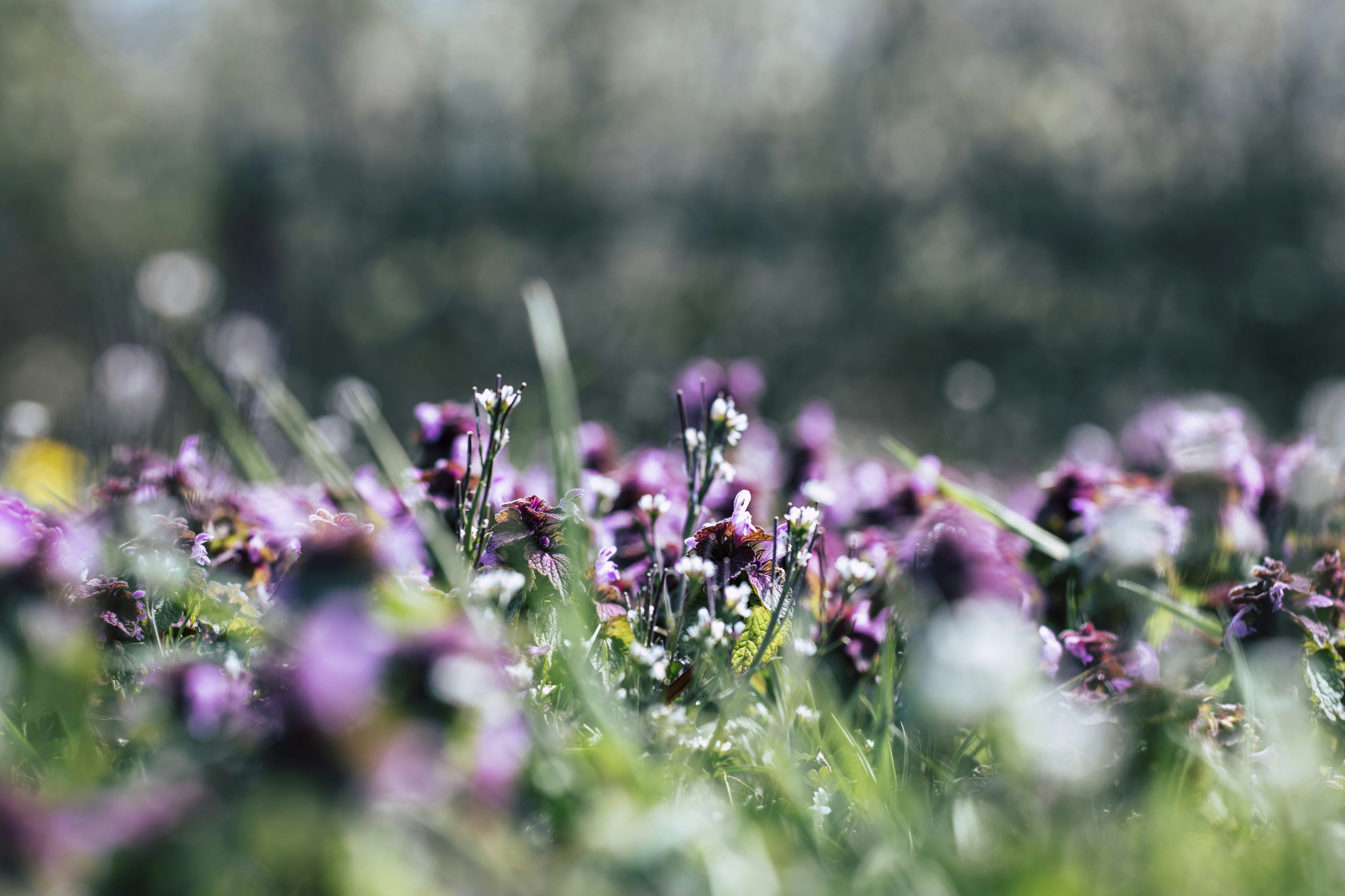 purple flowers in tilt shift lens