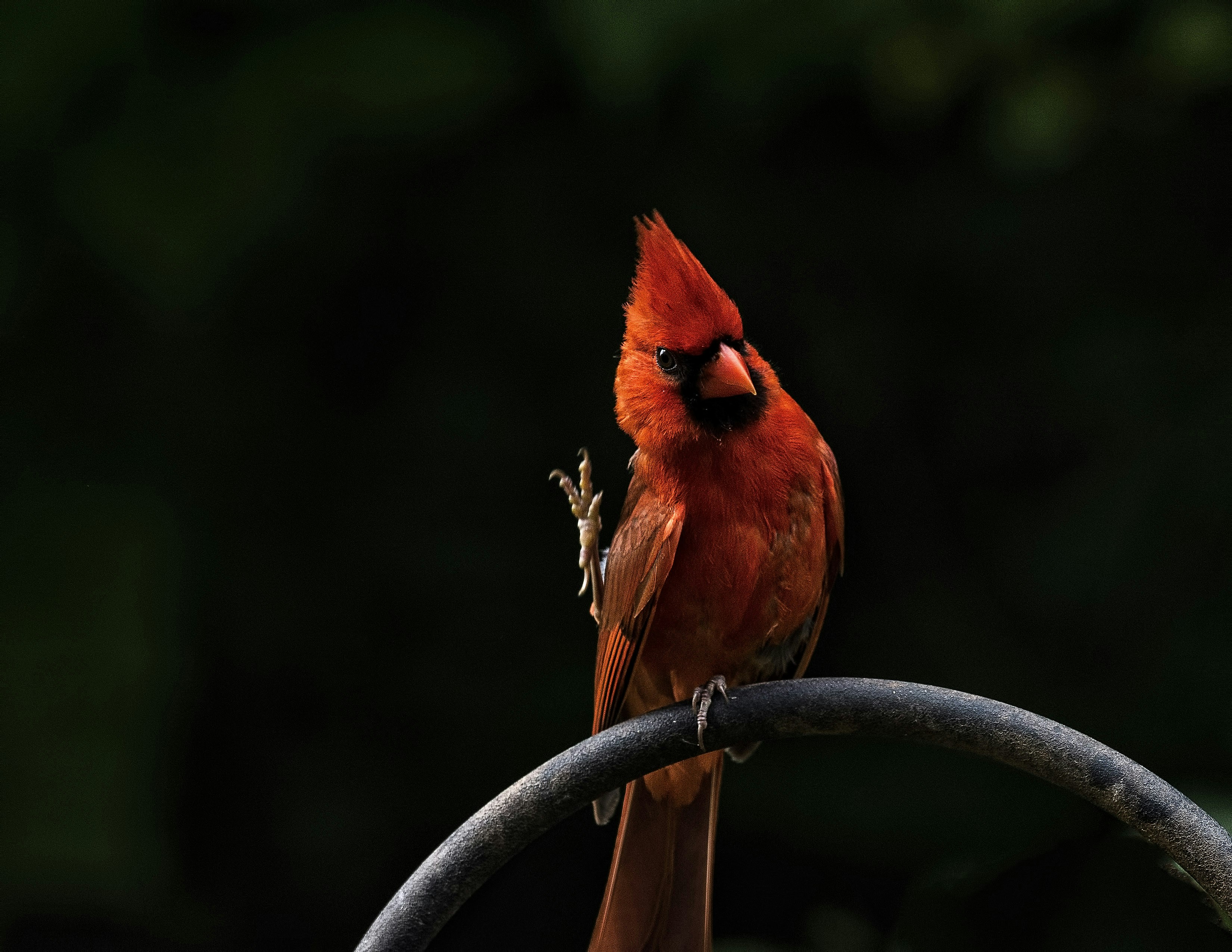 Set up some bird feeders in the back yard and had around 20 cardinals come during the summer of 2017 to the feeder. They set up their home in the trees and had many young cardinals towards the end of summer. I couldn’t decide if this one was waving a thank you or showing me he knows Karate.