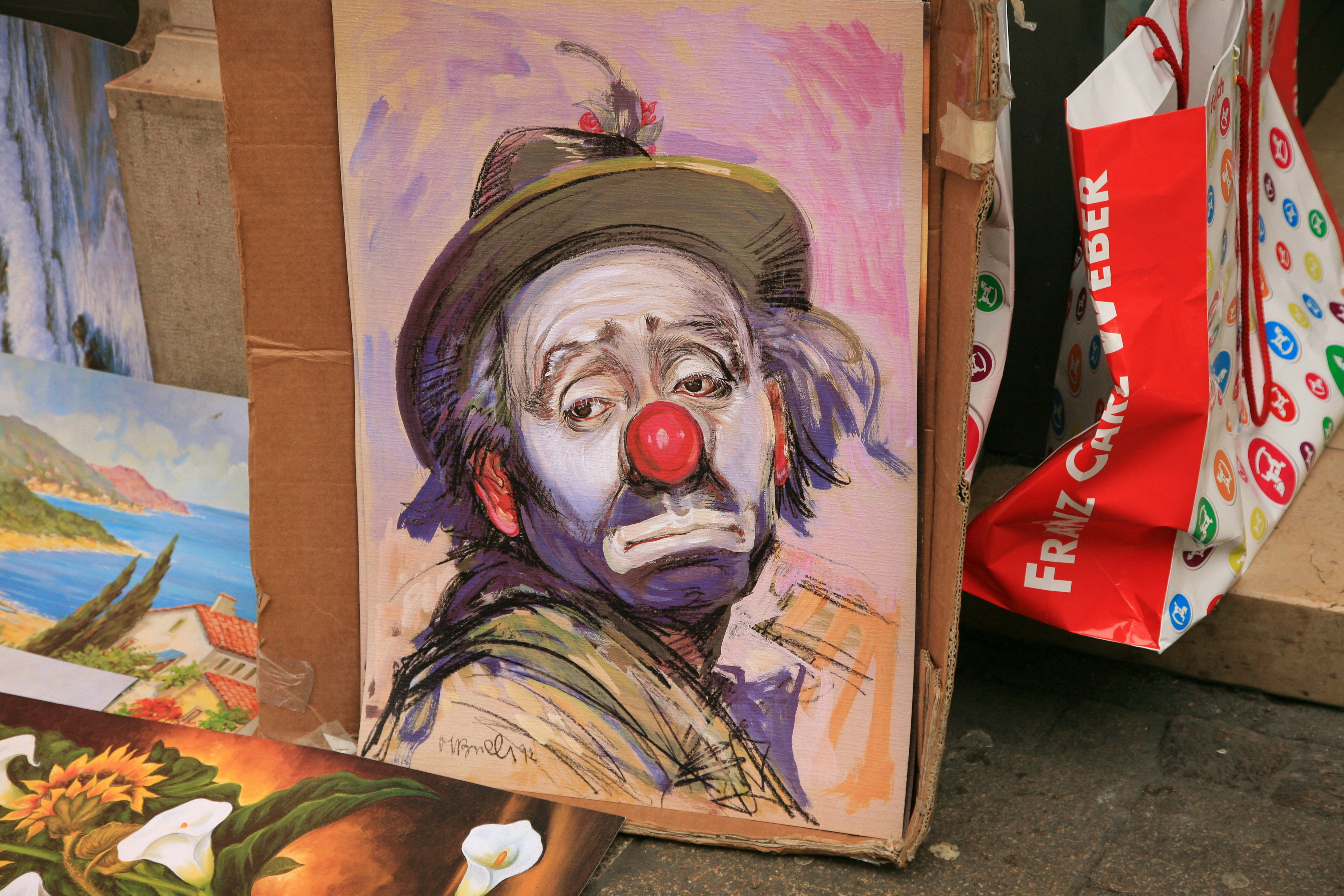 Art for sale at street market, Geneva, Switzerland