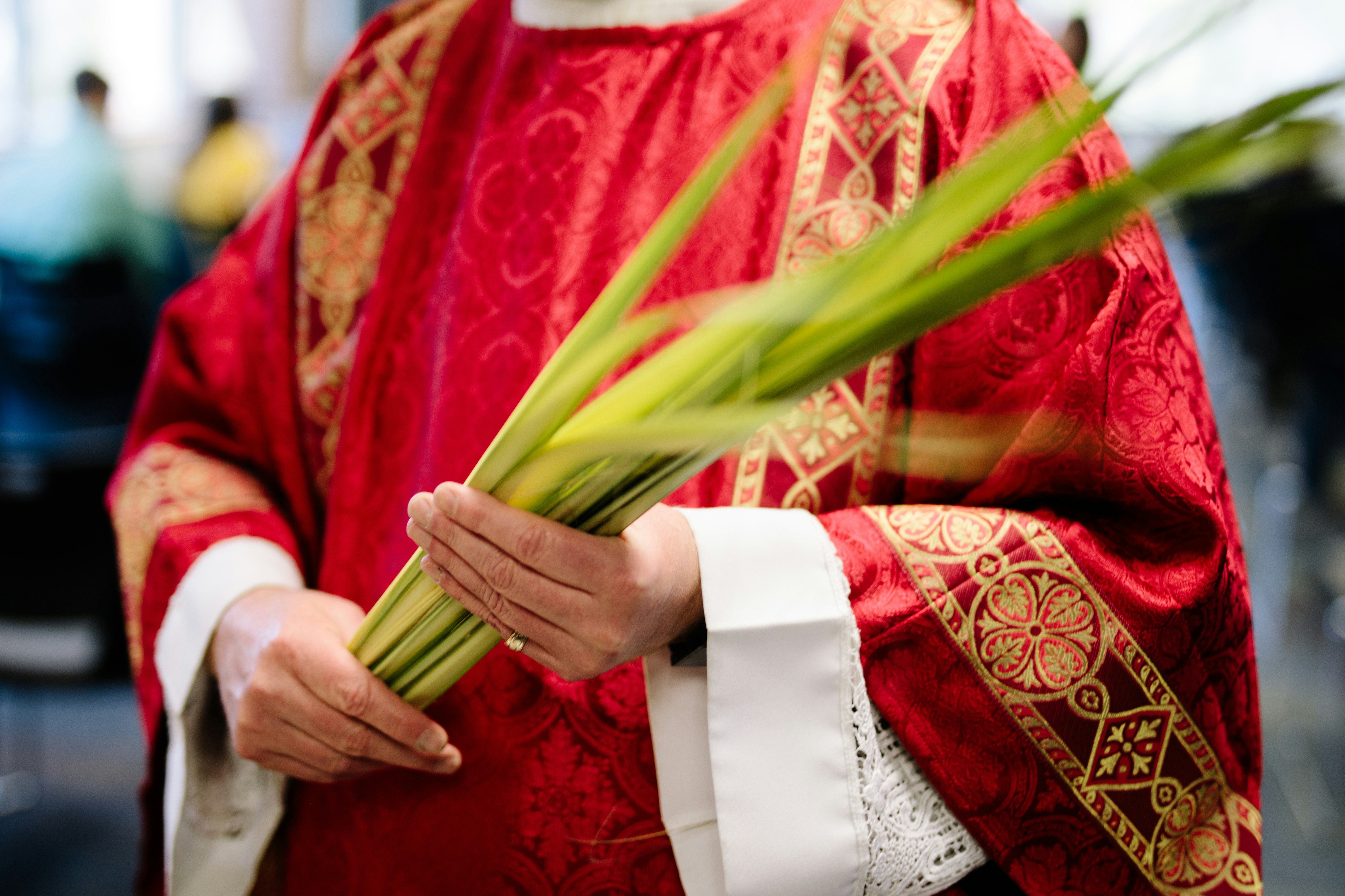 priest holding palm leaves