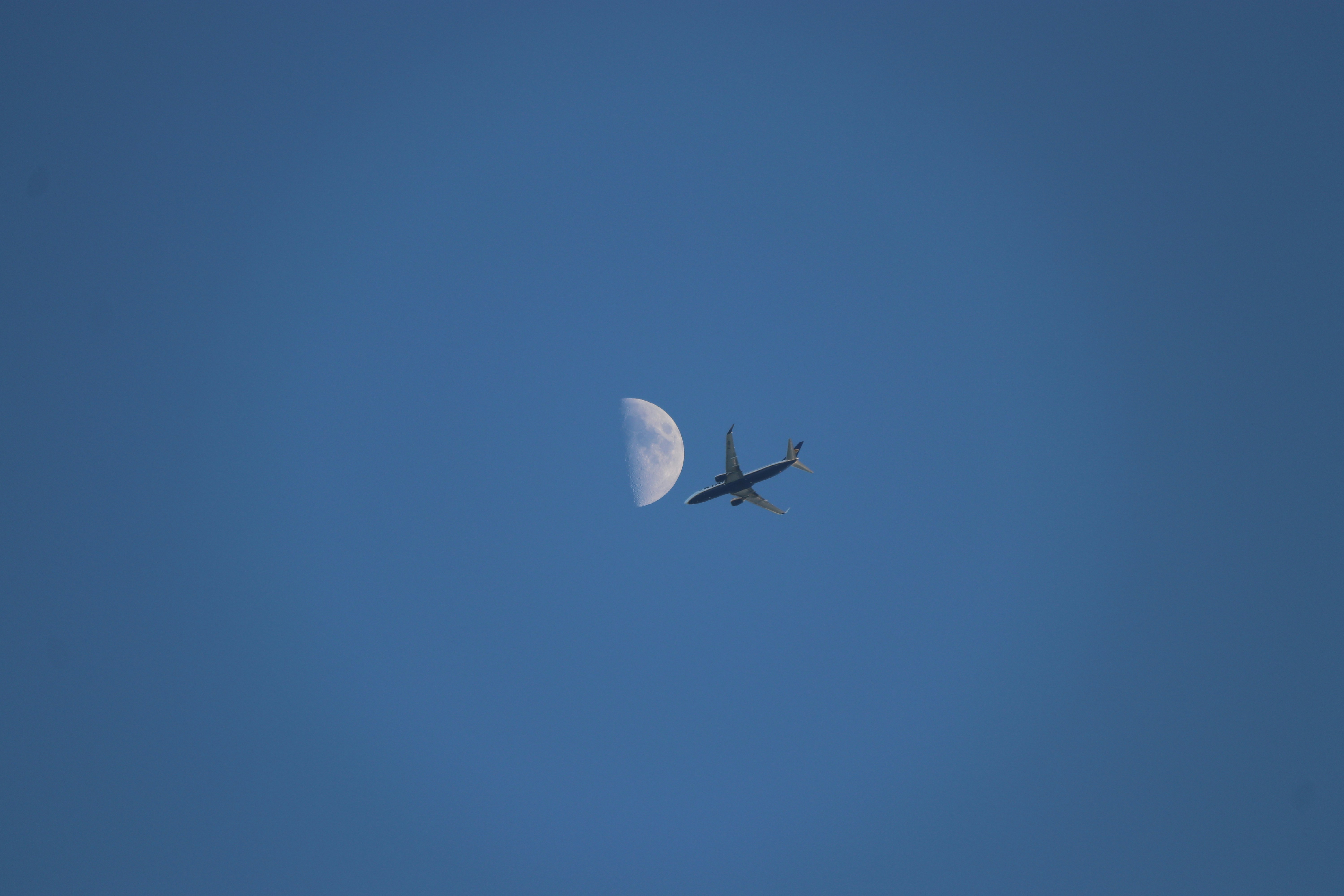 Plane flying past the moon