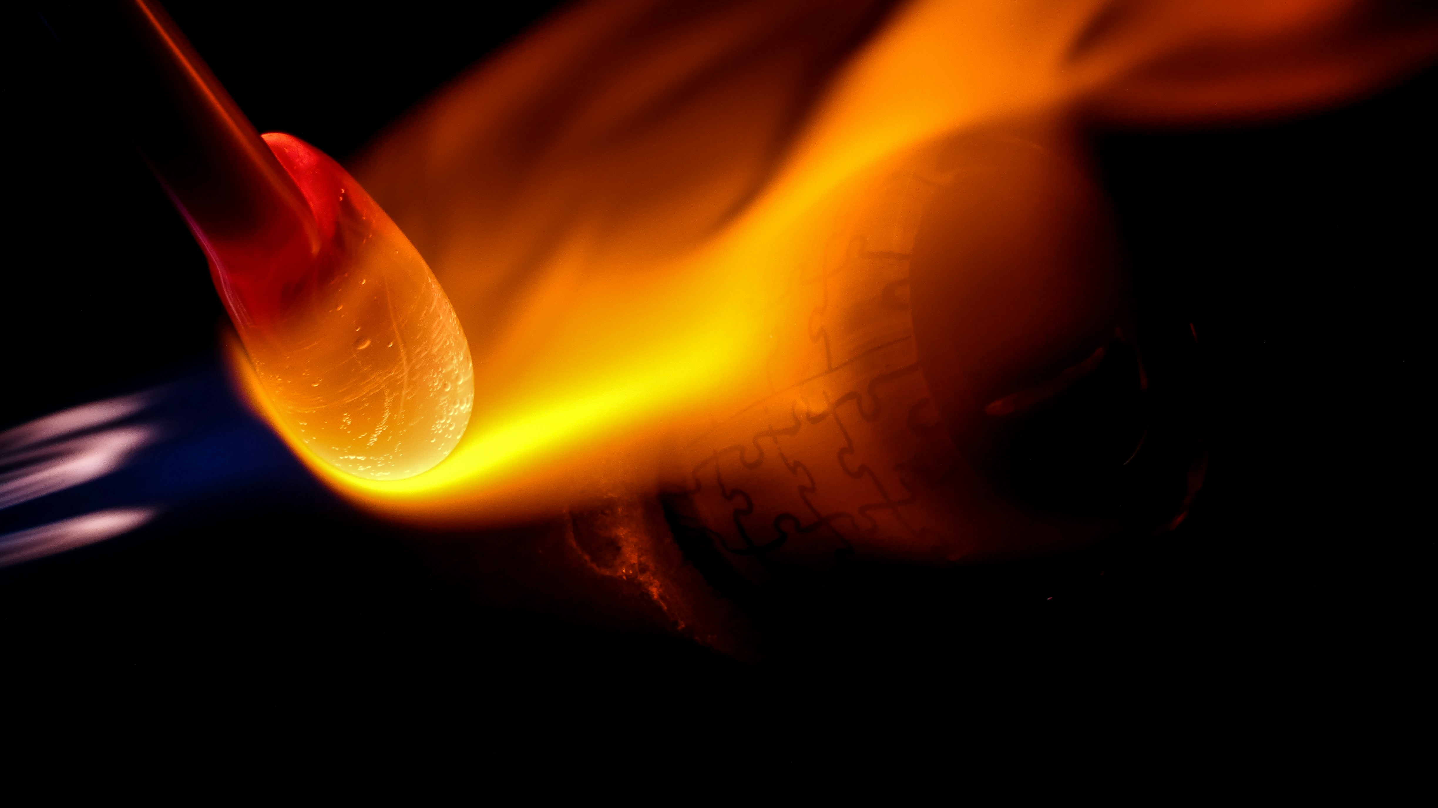 borosilicate glass artist adding a handle to a puzzle piece print glass cannabis bowl